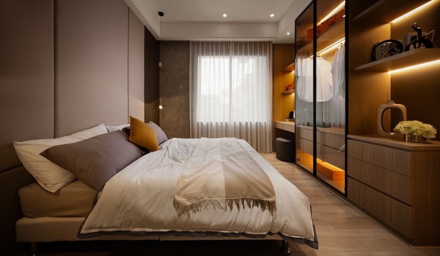 主臥室風格|沉穩配色搭配柔光設計,打造放鬆的睡眠空間