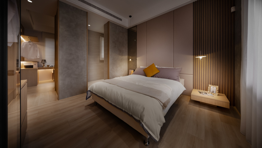 主臥室風格|沉穩配色搭配柔光設計,打造放鬆的睡眠空間
